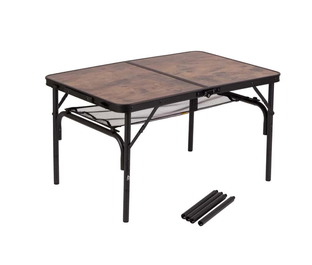 De Decatur is een stijlvolle aluminium campingtafel met een industriële uitstraling en houtlook tafelblad. Door middel van stelschroeven zijn de tafelpoten af te stellen op een ongelijke ondergrond. De poten zijn in 4 verschillende hoogtes verstelbaar (35/50/67/81). Daarnaast is de tafel van Bo-Camp zeer compact als koffermodel op te bergen door de afneembare poten en een deelbaar blad. Bovendien is de tafel voorzien van een net onder het MDF tafelblad om spullen in op te bergen, en een handgreep waardoor de tafel gemakkelijk is mee te nemen.