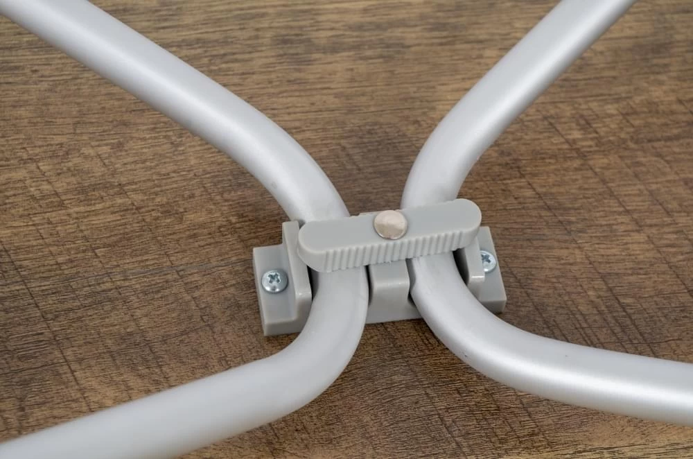 - Heel erg licht dus kijk uit met grote windvlagen. Dit is echter makkelijk te verhelpen door wat haringen door de voorgemaakte gaatjes in de poten te zetten.