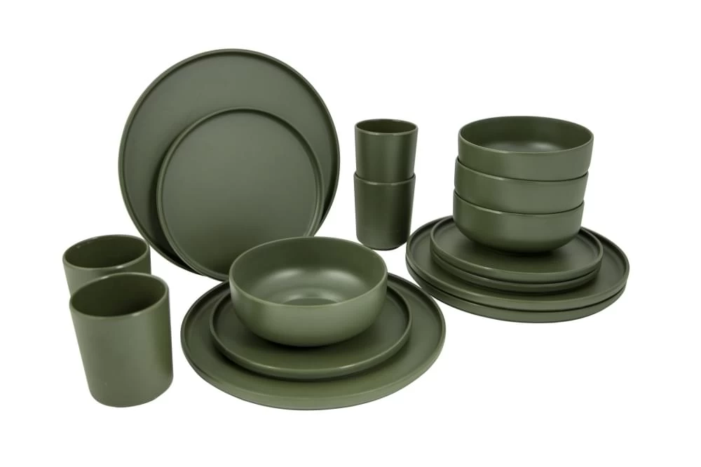 Deze 16-delige Serviesset Patom komt uit de Industrial serie van Bo–Camp. Het is een trendy set met opstaande rand en een mooie diepe kleur. Hij is geschikt voor 4 personen en zal prachtig staan op je campingtafel.