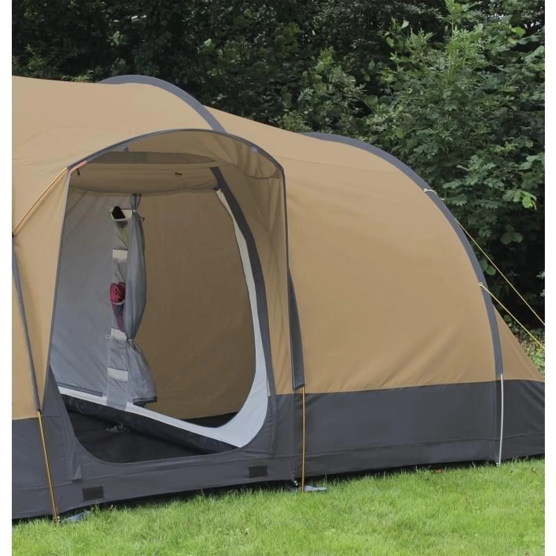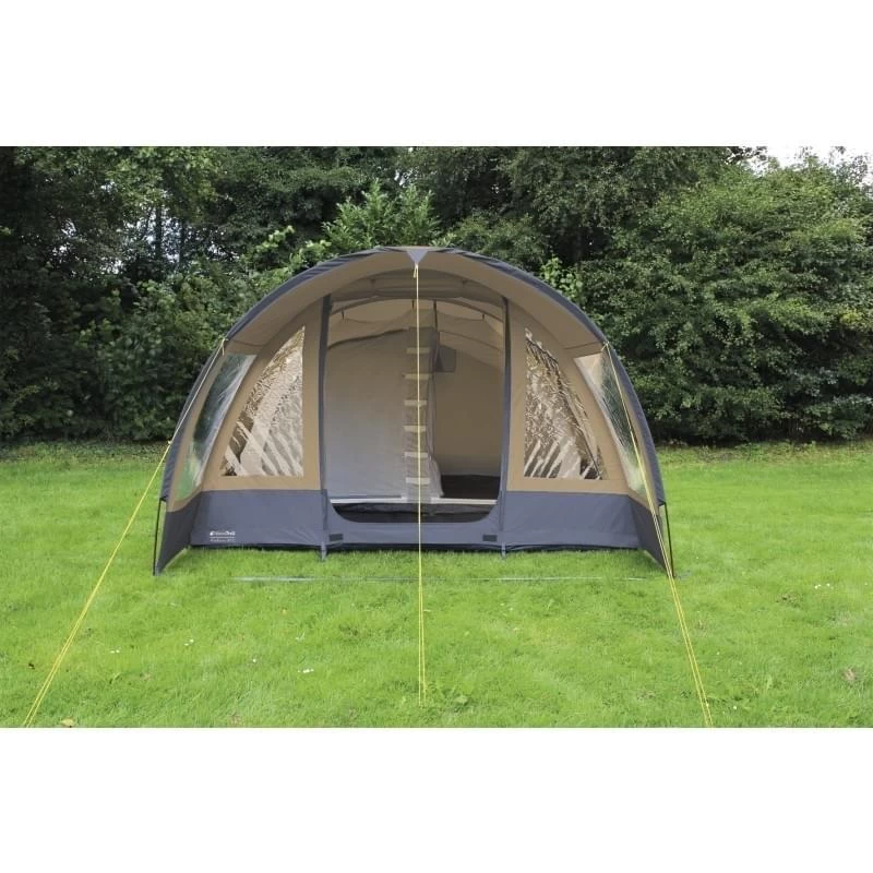 Familietent vervaardigd van het ademende polyester/katoen materiaal en geschikt voor 4 personen. Ruime leefruimte met grote heldere afsluitbare ramen rond-om en een mooi panoramisch uitzicht. Zijdeur met regenluifeltje en mesh deur. Het voorpaneel heeft grote heldere ramen en een extra mesh deur. Vaste voorluifel. De tent beschikt over een volledig ingenaaid grondzeil. Binnentent met scheidings-wandje en handige organiser in de voorwand en mesh pockets aan de binnenkant.