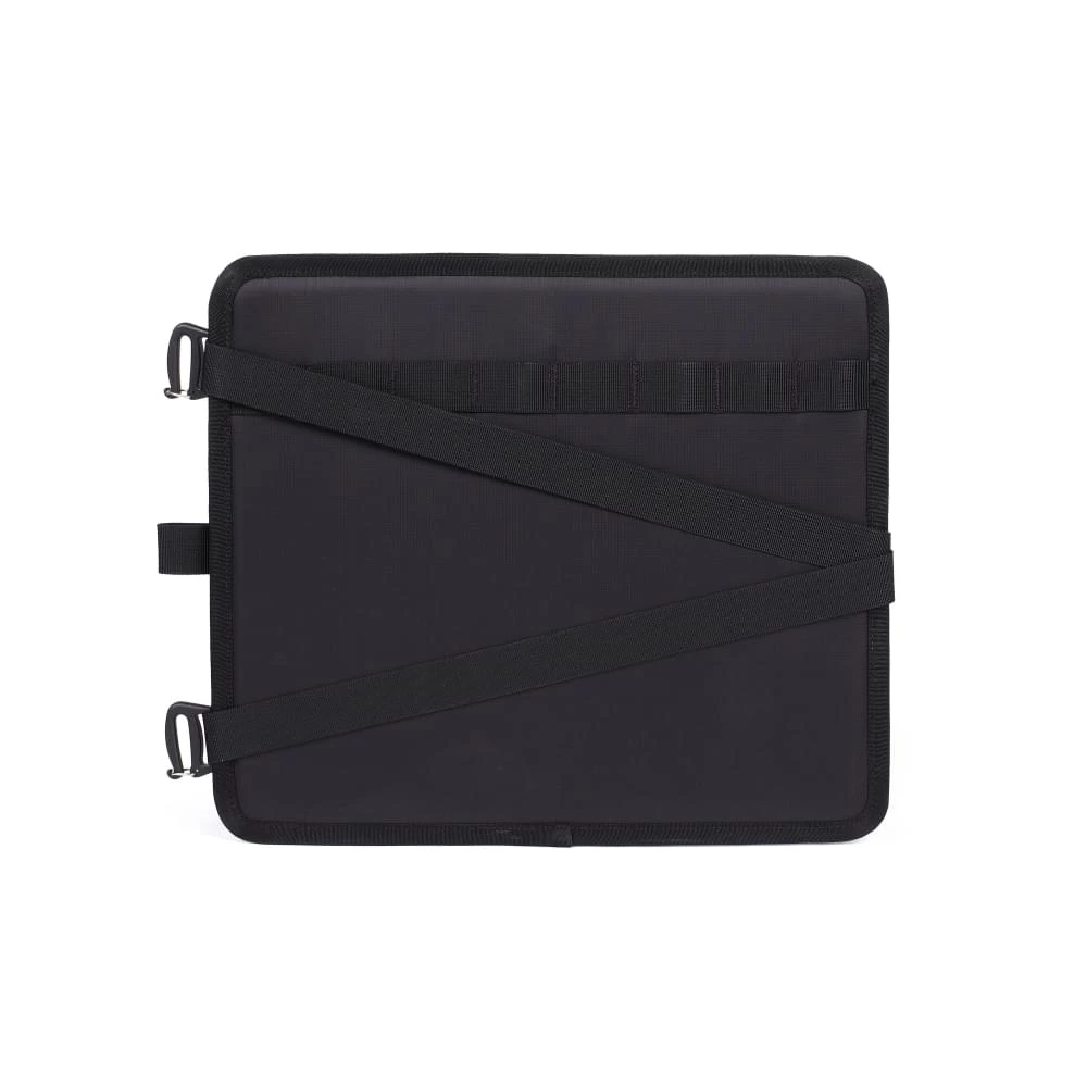Met deze slimme scheidingswand van Helinox kan je al je kleine spulletjes apart van je grote objecten houden als je de Field Office klaarmaakt voor vertrek. De ene kant is gemaakt van een sterk maar licht kunststof materiaal zodat bijvoorbeeld je laptop en drinkfles niet alle kanten op kunnen. De andere kant van de Compressor for Field Office is eigenlijk een groot opberg vak met mesh bekleding om je kleine spullen goed gescheiden te kunnen houden. Met de bijgeleverde banden kan je het geheel goed strak aandrukken zodat alles netjes op zijn eigen plek blijft.