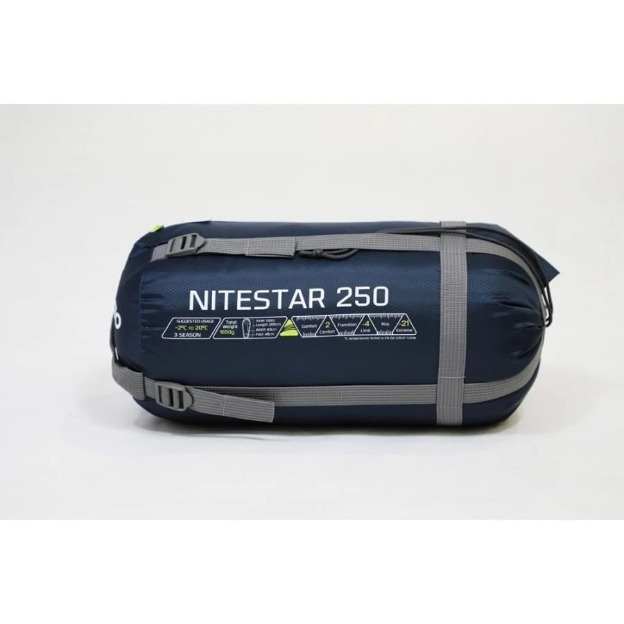 De Nitestar Alpha 250 heeft een 3D gevormde capuchon met voorgevormde zijkanten. Samen met het verstelbare schouderdeel zorgt dit voor zo min mogelijk warmteverlies via het hoofd en de schouders. De dubbellaags isolatie in de slaapzak is horizontaal doorgestikt zodat de vulling goed op zijn plaats blijft en er geen koude plekken ontstaan. Deze vulling is extra warm, lichtgewicht en zeer compact op te vouwen. Al met al een goede en betaalbare mummy slaapzakvan Vango die zeer geschikt is voor Scouts, schoolkampen en natuurlijk voor op vakantie.